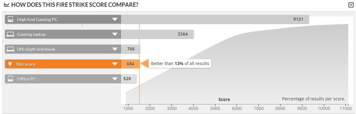 По результату популярного теста 3DMark мы можем увидеть, что этот ноутбук, несомненно, слабее того же Toshiba Satellite S50T-A-K3M, но остается на уровне достаточно хорошем для комфортной офисной работы.
