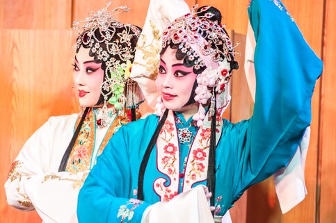 Пекинская опера отличается от европейской. Акцент здесь смещен на национальную музыку, язык жестов, танец, акробатику и элементы боевых искусств. Актеры облачаются в яркие костюмы с массивными головными уборами, которые весят до 10 килограммов. Гримируются и облачаются в костюмы артисты около трех часов.