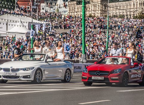 Для заездов у стен Кремля оборудовали трассу. В стартах приняли участие две команды "Формулы-1": "Феррари" и "Кэтерхем".