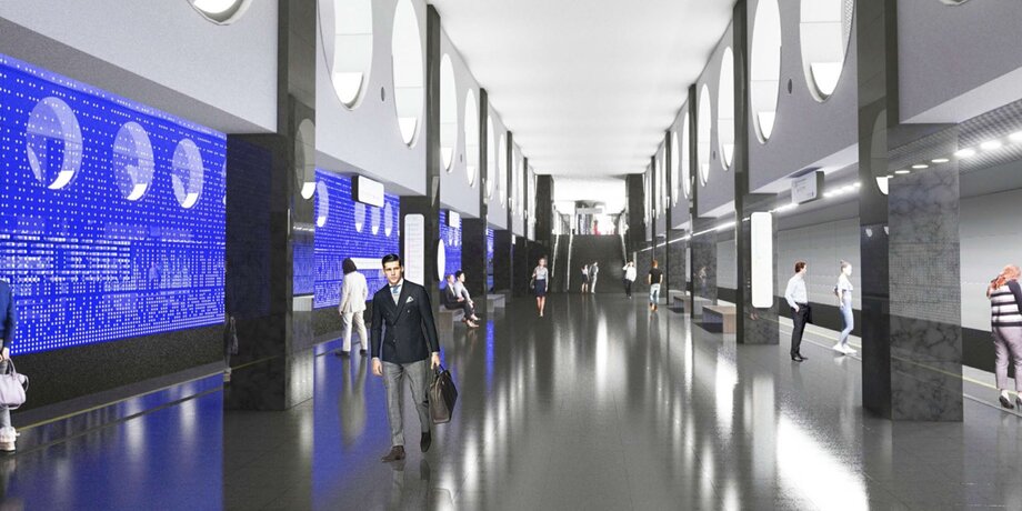 Светлые колонны, стены и пол из гранита также будут у пассажиров ассоциироваться с фарфором. Станцию планируют открыть в 2022 году.