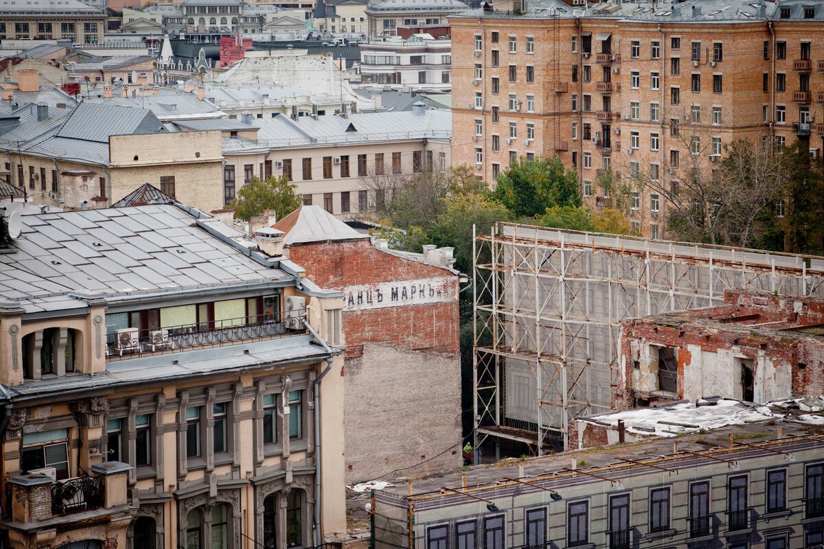 – В редакции много деталей из прошлой жизни дома. Осталась лестница, по которой поднимались официанты, чтобы попасть на крышу, и можно найти заделанные дверные проемы. Остался туалет, которым пользовались посетители кафе, причем, пожалуй, это туалет с лучшим видом на Москву. Есть душевая – это деталь из коммунального прошлого дома. У нас там хранятся журналы, но можно разглядеть и зеркало, и краны.