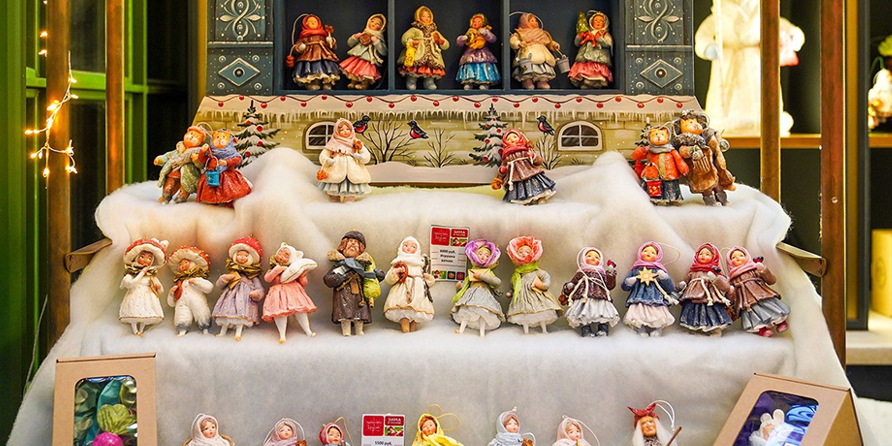 Также в рамках проекта будут открыты ярмарочные прилавки с большим выбором сувениров, где гости смогут найти ретроигрушки в виде ангелов, медведей и колокольчиков. Помимо этого, там представлены фарфоровые украшения с ручной росписью и золотом. Среди них есть и музыкальные фигурки, изображающие Спасскую башню Кремля или героев сказок "Буратино" и "Алисы в Стране чудес", каждая из которых продается с сертификатом подлинности.