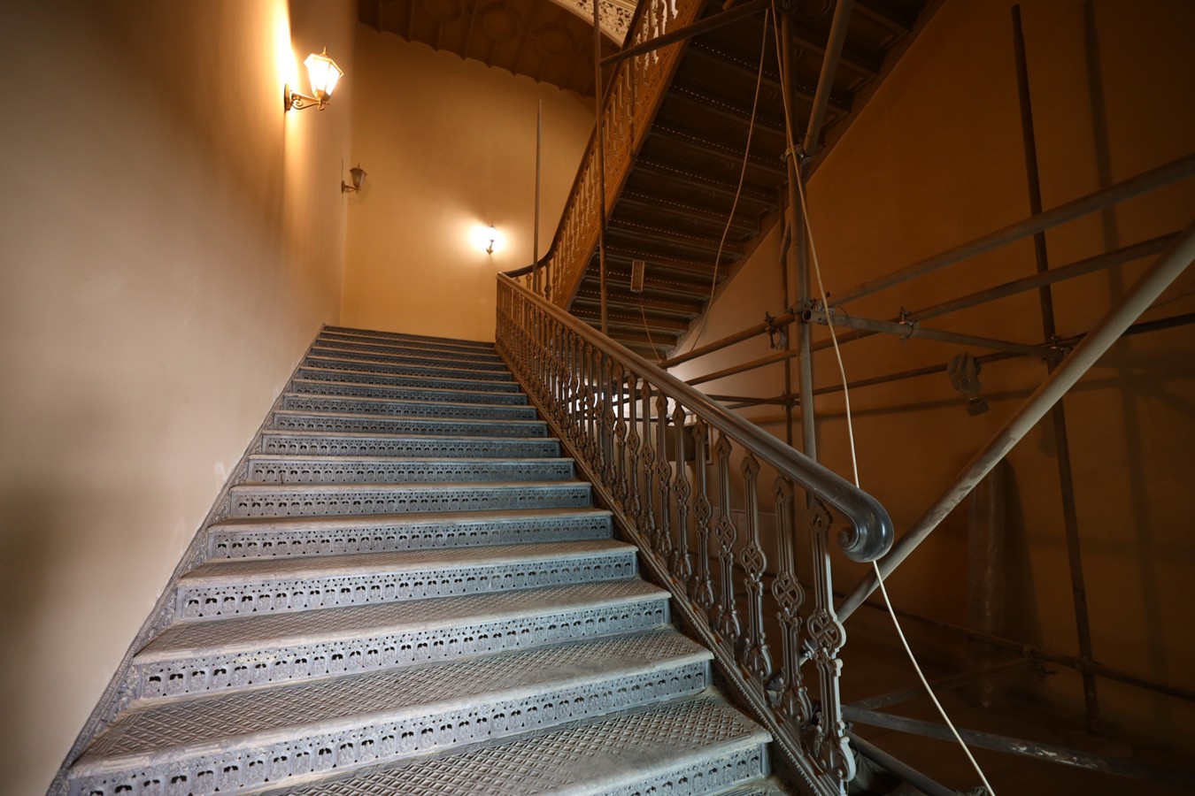 Второй объект – винтовая лестница внутри часовой башни. Она также выполнена из чугуна методом каслинского литья, установлена на фигурных кронштейнах и будет полностью расчищена и восстановлена.