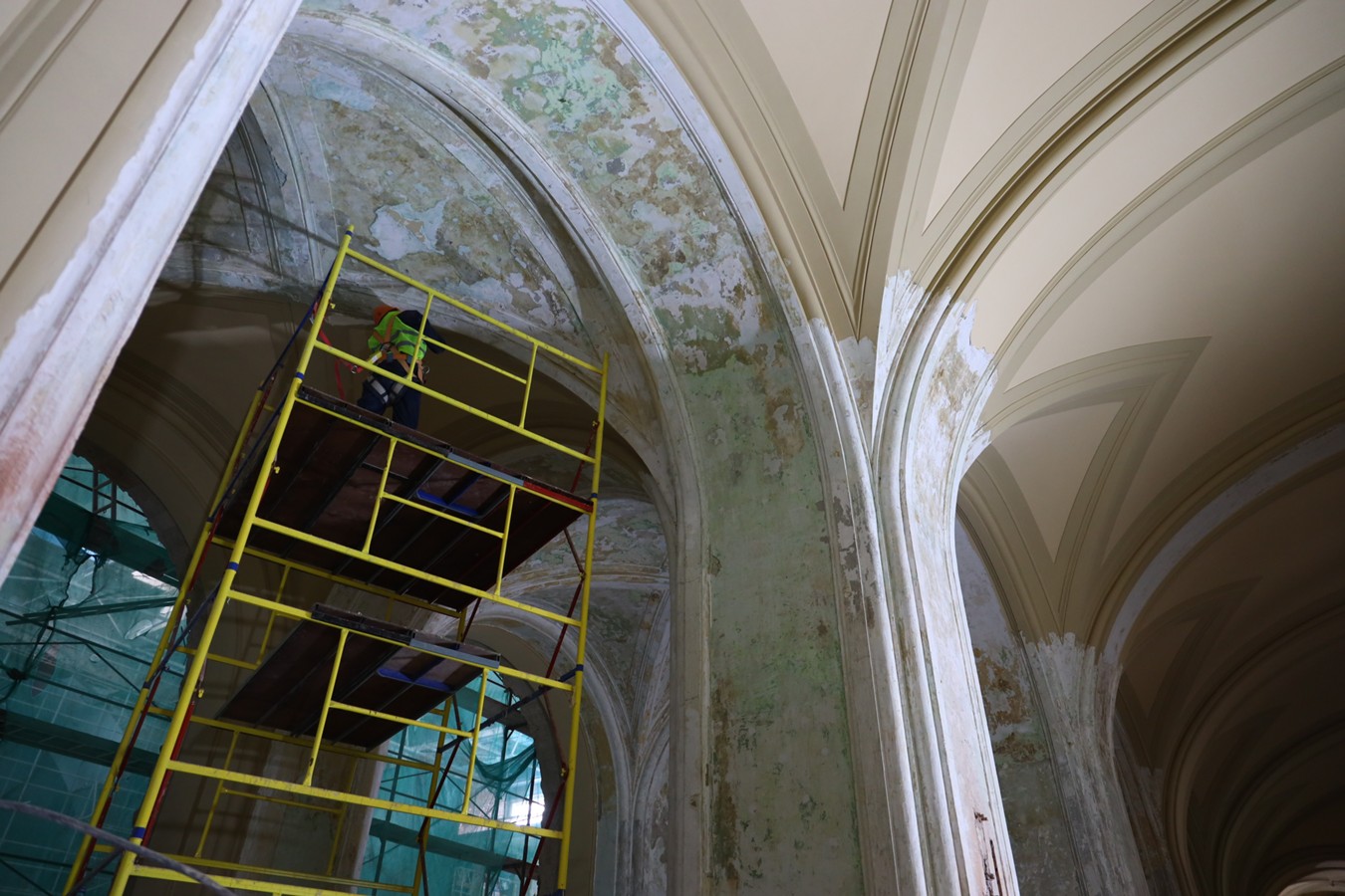 "В ходе расчистки капителей были выявлены следы более ранней реставрации, а также значительное количество оригинальной авторской лепнины. Уровень сохранности составляет 60–80%. Несмотря на большое количество утрат и замен, они в основном относятся к предыдущим этапам реставрации. В частности, многие акантовые листья были заменены на элементы из других материалов", – пояснила художник-реставратор Алиса Хандлос.