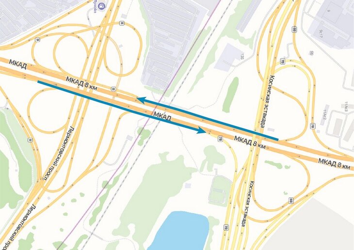 В этом году на 8-м километре МКАД (внешняя сторона) добавят дополнительную шестую полосу: она будет начинаться от места, где заканчивается дублер МКАД и начинается выезд с Рязанского проспекта из центра, и продлится до съезда на Косинское шоссе в область. Одновременно на внутренней стороне кольцевой дороги в этом месте будет добавлена полоса от выезда с Северо-Восточной хорды (СВХ) до съезда на Рязанский проспект.