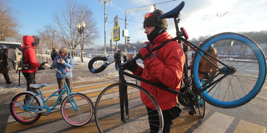 При этом нужно помнить, что в сильный мороз (при температуре минус 25 градусов и ниже) у велосипеда все-таки меняется поведение. "Например, на морозе дубеет вилка и замедляется переключение передач, так как тросики примерзают и скрипят", – рассказал Михаил Невелев.