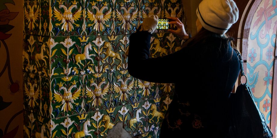 Под конец нам показывают помещение, где когда-то по указу Петра I была напечатана первая русская газета "Ведомости". Есть красивая легенда, что для ее популяризации император ввел правило: если человек прочитывал эту газету в трактире, его бесплатно кормили обедом. На изразцовых печах – снова единорог и лев, причем с короной. В этом помещении пока что нет отопления, но в будущем, по словам экскурсовода, тут может появиться музей Печатного Двора. Учитывая интерес к зданию, это было бы правильнее, чем предыдущая глава из истории "теремка".