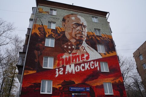 Завершилась работа над граффити по мотивам киноэпопеи Юрия Озерова "Битва за Москву". Рисунок нанесли на стену дома № 100 по Волоколамскому шоссе, сообщает пресс-служба Российского военно-исторического общества (РВИО).