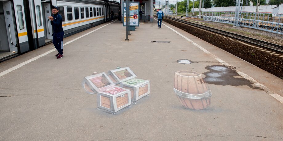 Центральная пригородная пассажирская компания начала эксперимент по рисованию 3D-граффити на платформах железнодорожного сообщения во время ремонта. Об этом m24.ru рассказали в пресс-службе компании.