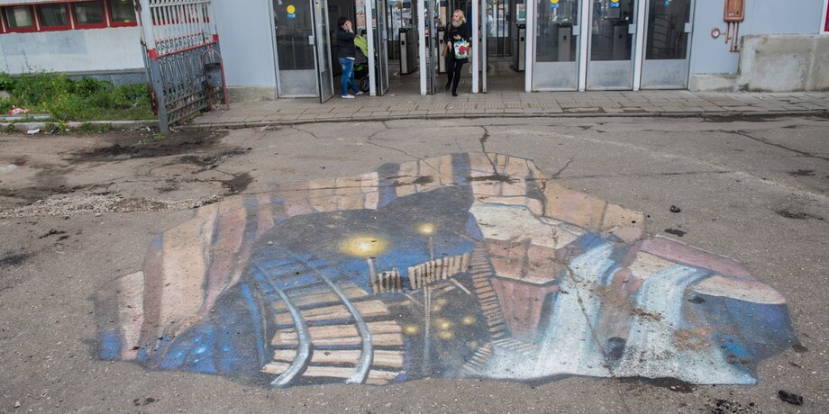 Тематические 3D-граффити покрыли всю платформу. ЦППК отследит реакцию пассажиров и, если им понравится, будет временно разрисовывать все ремонтируемые станции.