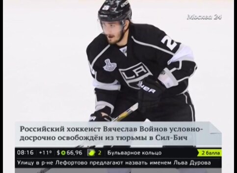 Российский защитник клуба Национальной хоккейной лиги "Лос-Анджелес Кингз" Вячеслав Войнов, осужденный американским судом по делу о бытовом насилии в отношении своей жены, условно-досрочно освобожден из тюрьмы в Калифорнии, сообщает издание The Fourth Period.
