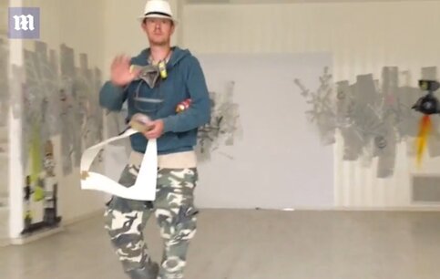 Лицо художника Бэнкси попало в кадр, сообщает Daily Mail. Тщательно скрывающий свою внешность стрит-артист был заснят во время работы на выставке в Израиле.