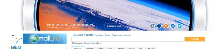 На интернет-портале Mail.ru вместо логотипа появилось изображение земного шара. Помимо этого, наверху главной страницы появились фотографии с различными видами с борта МКС.