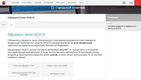 Первый из них называется "Советник". В нем представлены интерактивные инструкции по решению актуальных бытовых проблем и получению популярных госуслуг. На главной странице можно увидеть актуальные руководства или воспользоваться поиском по категориям.