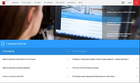 Интерфейс сайта столичного правительства полностью переработали. Теперь он позволяет быстро отыскать нужную информацию. Так, главное меню портала разбито на семь разделов.