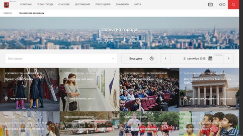 Новости со всех городских ведомств собраны в разделе "Пульс города". Все данные, опубликованные на страницах, подтверждены нормативными документами. В этом же разделе пользователи смогут ознакомиться с ближайшими городскими событиями с помощью "Московского календаря".