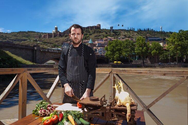 В ресторане, где работает шеф Джоджуа, только одно блюдо готовится исключительно из иностранных продуктов – сырная тарелка, все сыры которой привезены из Грузии.