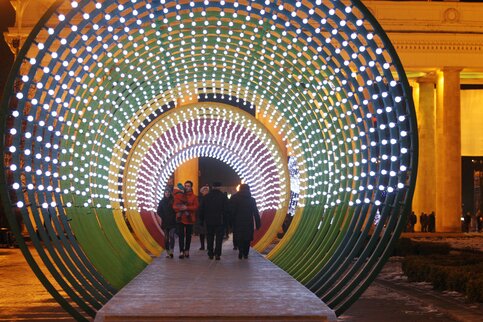 Парящая в воздухе елка, разноцветный фонтан и расписанный граффити огромный каток ждут посетителей парка Горького в предстоящем зимнем сезоне. Об этом директор парка Марина Люльчук рассказала в интервью mos.ru.