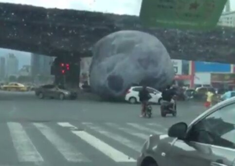 По улицам китайского города Фучжоу прокатился надувной шар в виде Луны, сообщает сайт "Комсомольской правды".