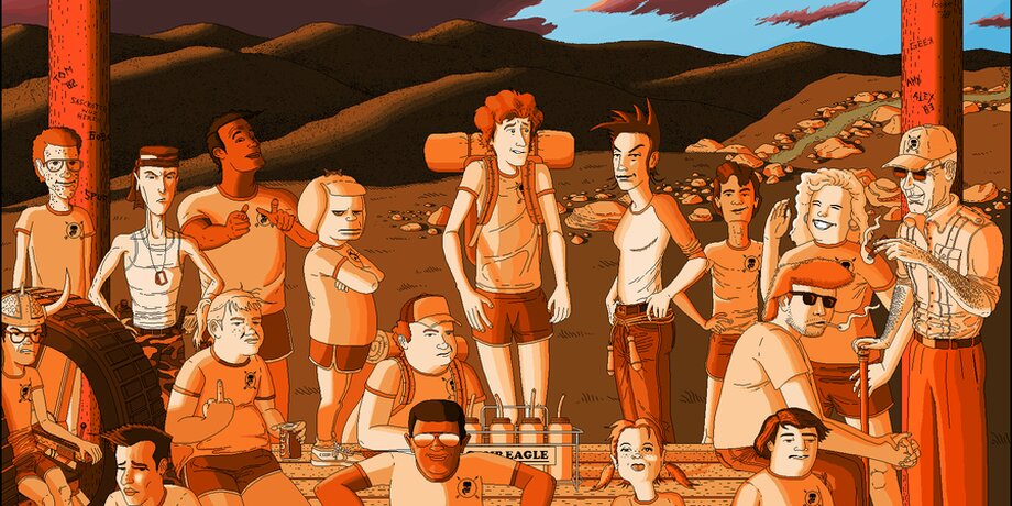 Рассказ "Кровавый лагерь и неизбежная месть" про подростков 1980-х, поехавший в лагерь в Нью-Гемпшире, полный монстров и призраков, Хайнс написал еще в 2000-х. Так как он не разбирался в программах вроде Adobe Photoshop или Illustrator, то решил проиллюстрировать его с помощью примитивной Power Paint. Иллюстрации, которые он делал во время ночных дежурств в регистратуре больницы, выглядят довольно своеобразно, но поражают проработанностью мельчайших деталей.