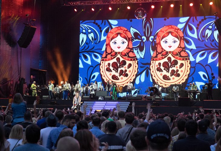 Группа "Ленинград" собрала очень резношерстную аудиторию – от 18 до 50. В самом начале концерта Шнуров исполнил один из своих хитов "Пару баб": "Нам не нужен модный клаб – веник, пар и пару баб". Во время песни на экране позади музыкантов нарисованный Шнуров в вальсе кружился с матрешками.