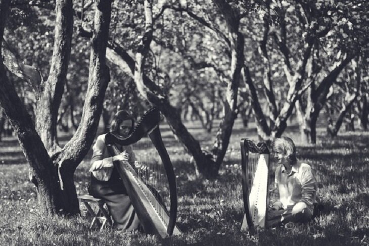 M24.ru узнал у музыкантов - основательницы Московской школы кельтской арфы Ольги Пацук, директора первой Школы кельтской арфы в Петербурге и одного из организаторов "Арфаvita" Аси Сергеевой, участника проектов Algambra и Presence Филиппа Барского, основательницы группы Meldis Анастасии Паписовой, одной из первых самостоятельно освоивших кельтскую арфу в России, и Елены Даниленко - причины, по которым они выбрали кельтскую арфу, условия, необходимые для быстрого обучения игре, а также об их любимых исполнителях и композициях с арфой.