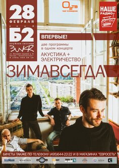 28 февраля в клубе "Б2" концертный год откроет группа "Зимавсегда". Музыканты приготовили сюрприз для своих поклонников – в этот вечер они смогут услышать не только новые композиции, но и песни, с которых началась история группы.