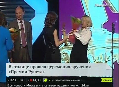 Премии в этой номинации также удостоились сайты телеканала "Дождь", журнала "Дилетант" и проектам SmartNews.ru, а также "Открытый показ" и "Московские новости: Русский язык" от РИА Новости.