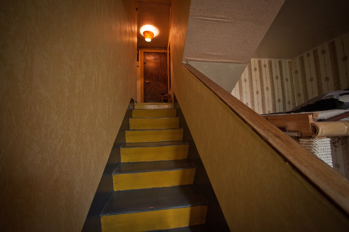 Когда мы год назад въехали сюда, в коридоре были странные надписи на стенах, пустые окна, сквозняк. Потом его отремонтировали, закрыли балкон гипсокартонном, стало гораздо лучше.