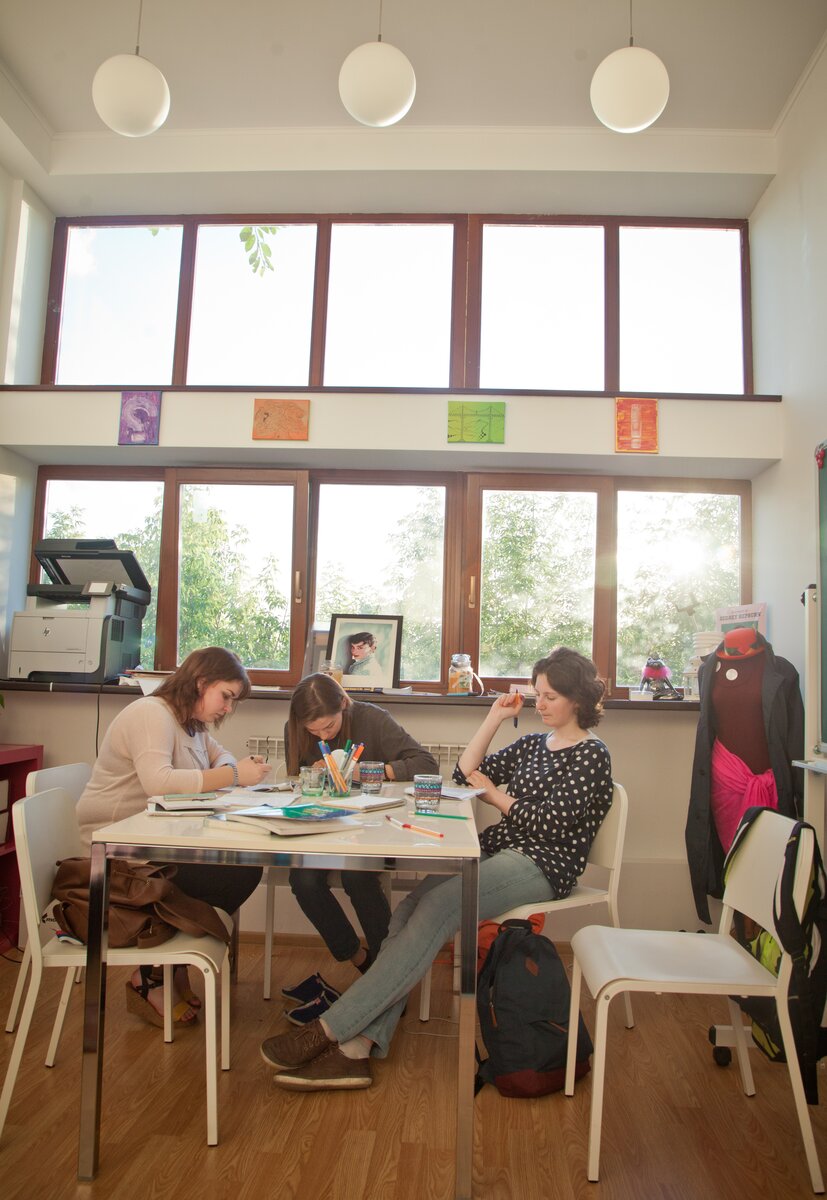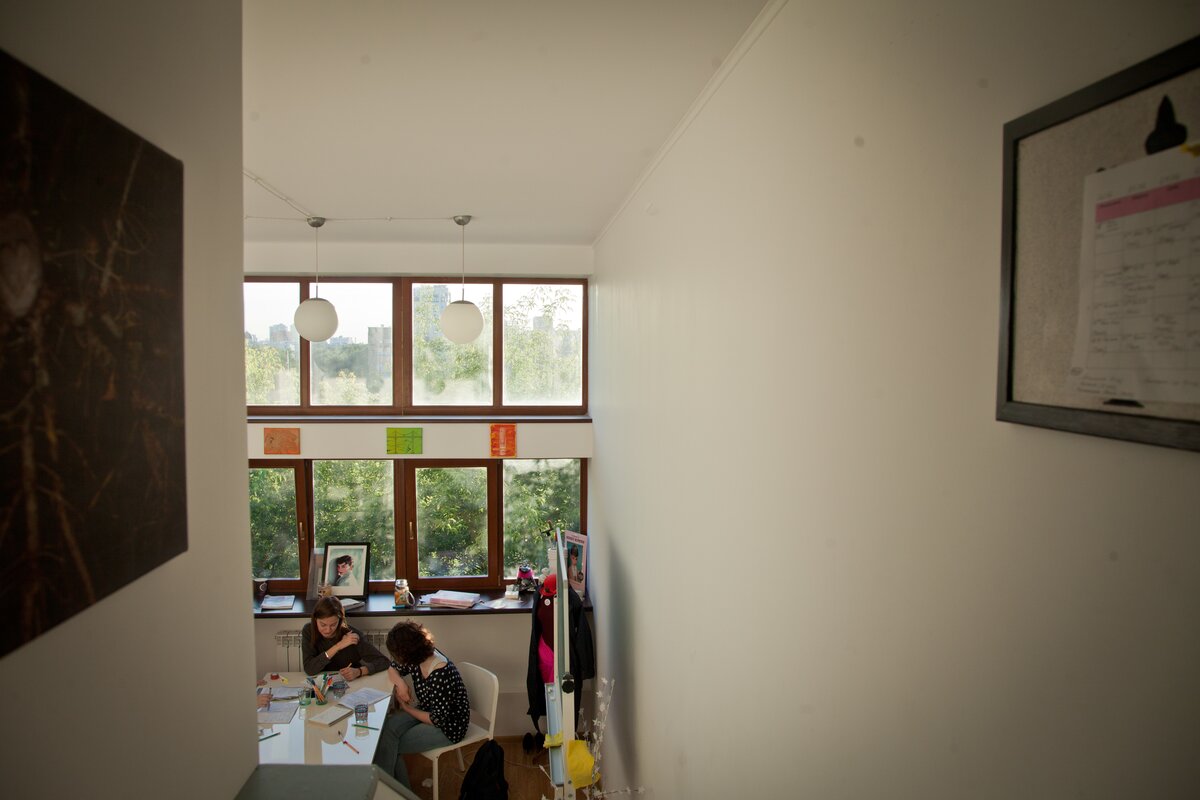 У нас здесь архитектурное бюро и курсы для архитекторов "СофтКультура". Мы выбрали именно эту ячейку потому, что в ней требовались минимальные изменения, чтобы сохранить аутентичность, показать архитектурные ценности и важные моменты, которые есть в этом доме. Наши ученики приходят сюда как на экскурсию. Ведь большинство из них слышали про Наркомфин, видели его чертежи, но только когда ты тут оказываешься, ты начинаешь понимать и чувствовать замысел архитектора. Многие к нам специально для этого приходят. Мы с удовольствием рассказываем, сделали о доме книгу.