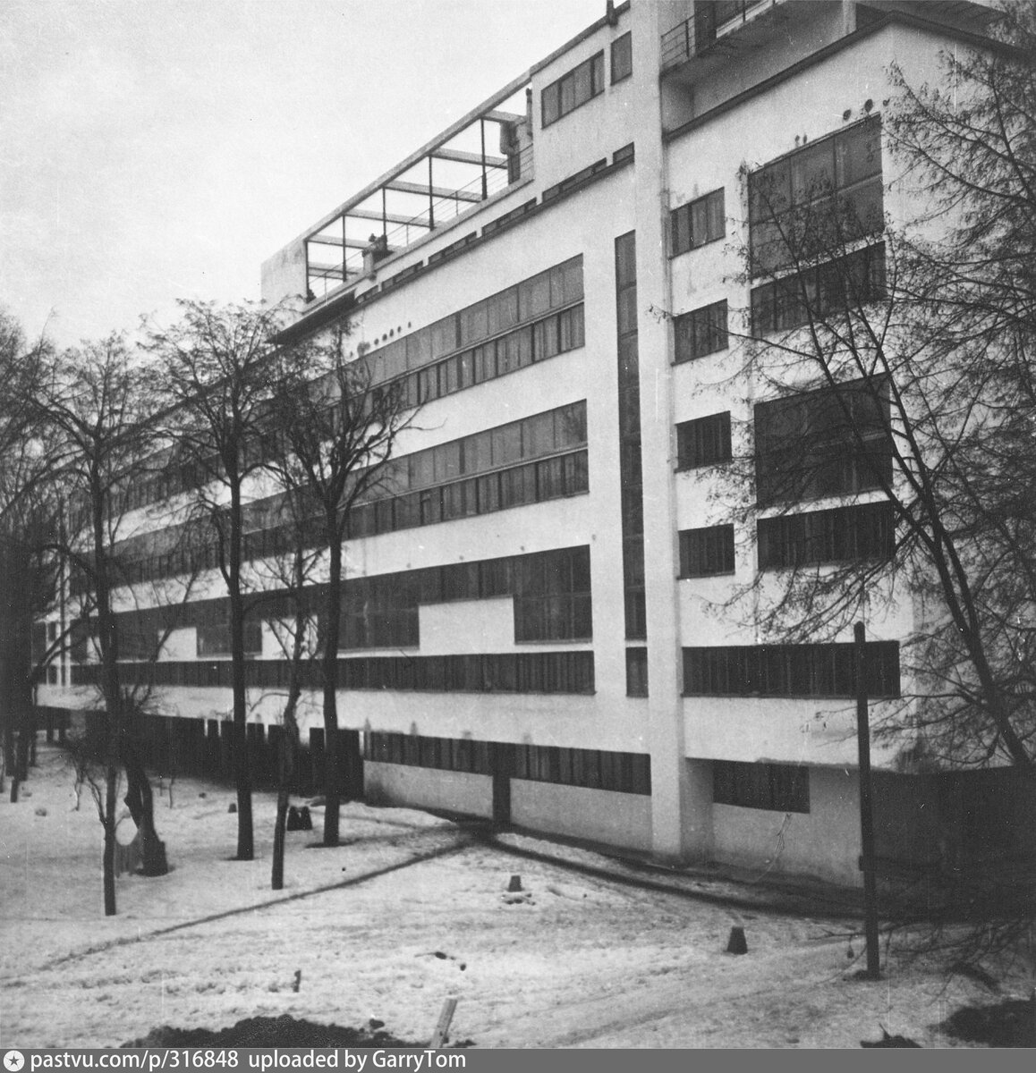Своими секретами мы… делились на верхней крыше – туда никто не мог подойти незамеченным. Когда мы подходили к перилам, просто дух захватывало от высоты. Видно оттуда было очень далеко, особенно на запад (до Кунцева) и на юг (до Новодевичьего монастыря). А утром и вечером был слышен бой Кремлевских курантов. Днем мы дружили с собаками и кошками, которых выпускали гулять на крышу, учили собак не обижать кошек, а вечерами смотрели салюты. Особенно красивым был салют в честь взятия Харькова. Он запомнился на всю жизнь.Из книги "Жилой комплекс "Дом Наркомфина"