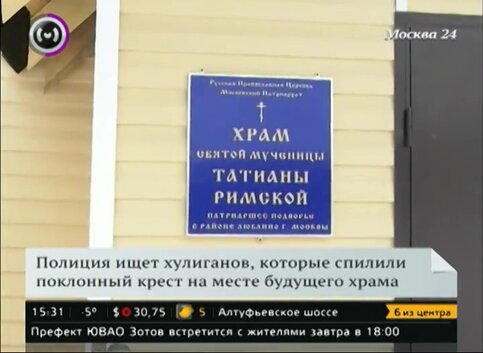 Неизвестные спилили и похитили поклонный крест, который был установлен на месте строительства храма на юго-востоке Москвы.