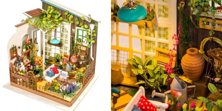 Румбокс – конструктор, позволяющий самостоятельно собрать детализированный интерьер гостиной, террасы или даже теплицы – с комнатными растениями (из бумаги), симпатичной мебелью и даже светодиодной подсветкой.