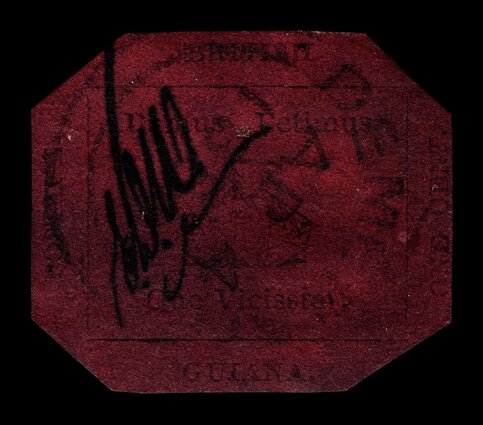 Крепко обидевшись на такую самодеятельность, Далтон приказал своим подчиненным расписываться на каждой марке во избежание подделок. Отсюда и надпись от руки в левом верхнем углу марки EDW – инициалы сотрудника почты Эдварда Уайта. Остается добавить, что изначально "Гвиана" была привычной нам прямоугольной формы, а вот кто, зачем и с какой целью обрезал ее до восьмиугольника – неизвестно.