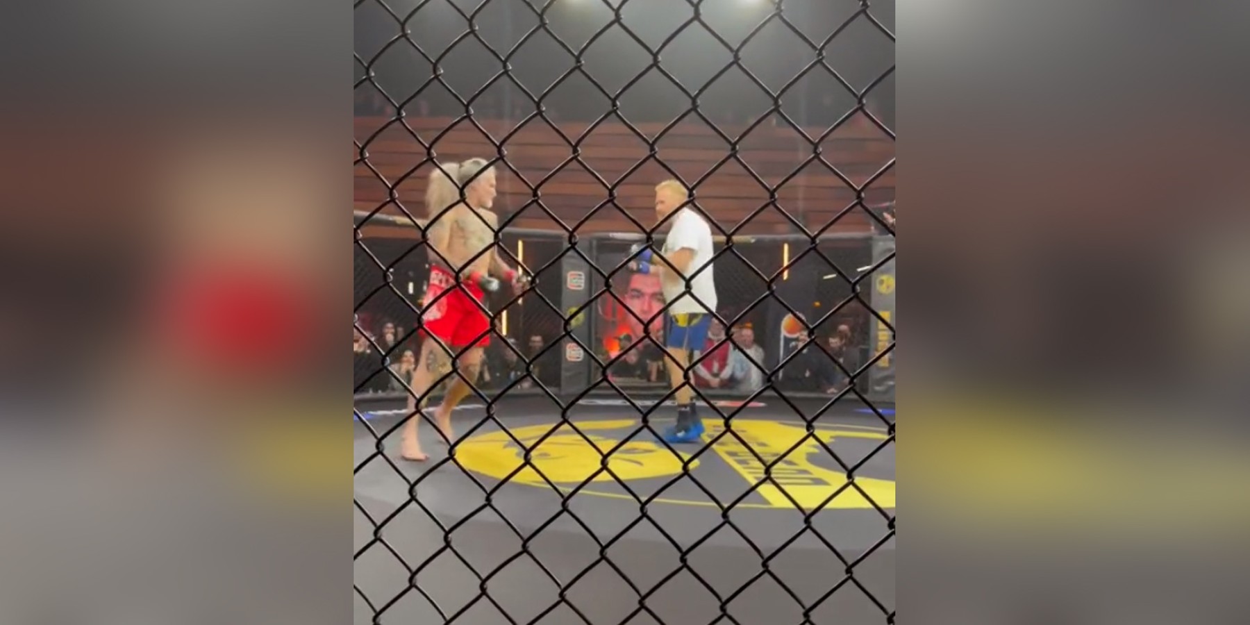 Оппоненты провели на ринге три раунда по одной минуте. Бой проходил по правилам бокса, но удары в голову были запрещены. Вместо боксерских перчаток противники вышли в перчатках для смешанных единоборств.