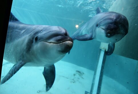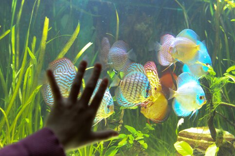 Некоторых из обитателей "Москвариума" можно не только увидеть: в одном из открытых бассейнов посетителям разрешено дотронуться до морских звезд, скатов и рачков. Кроме того, с панорамной площадки открывается вид на игры косаток, белух и дельфинов.