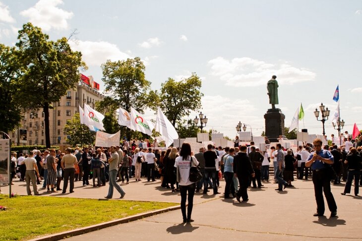 В акции на Пушкинской площади приняли участие более тысячи владельцев малых предприятий. Аналогичные митинги прошли и в других городах страны.