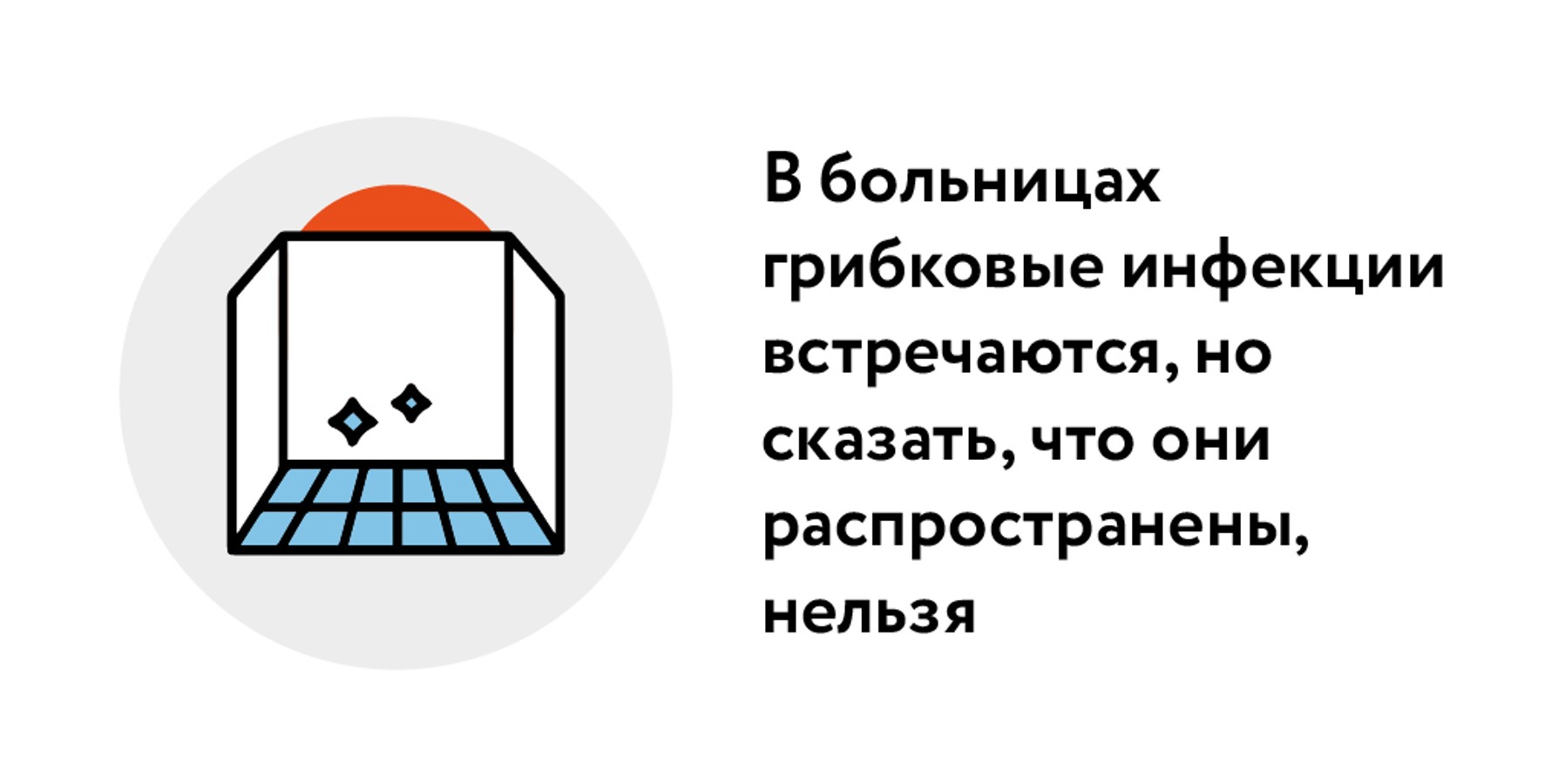 По словам Мескиной, в больницах грибковые инфекции встречаются, но сказать, что они сильно распространены, нельзя.
