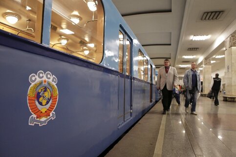 На станции метро "Партизанская" Арбатско-Покровской линии ко Дню города вновь открылась выставка ретро-вагонов, которая проходила в мае в честь 80-летия Московского метрополитена.