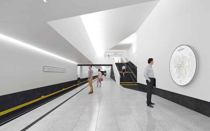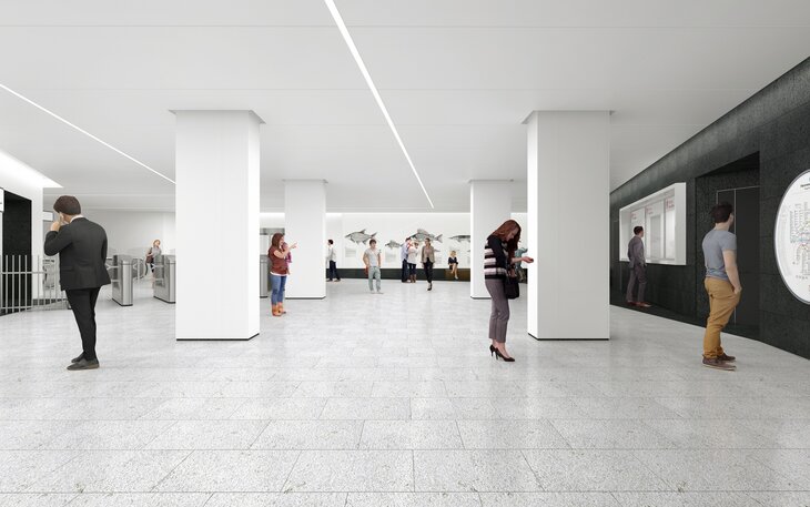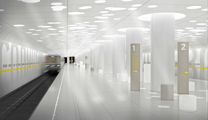Тема отразится и в оформлении потолка над входной лестницей на станцию – его сделают в форме чешуи. А подземные своды будут просты и минималистичны.