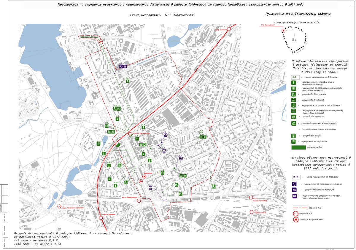 Здесь комплексно благоустроят места рядом со станциями, создадут новые тротуары и плоскостные парковки, сделают дождевую канализацию. Также возле станций установят более 100 навигационных стел и более 110 остановок общественного транспорта. На территориях появятся 162 велопарковки, 18 велобоксов и 3 станции велопроката. Закладные станции с электричеством для велопроката создадут на Верхних Котлах, Площади Гагарина и Крымской.