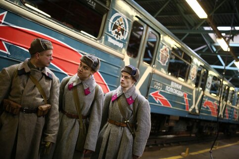 Еще один поезд посвятили великим российским полководцам. Одноименный поезд запустили на Сокольнической линии в честь 75-летия исторического военного парада 1941 года на Красной площади. Поезд стал совместным проектом московского метрополитена, министерства культуры РФ, киностудии имени М. Горького и Российского военно-исторического общества.