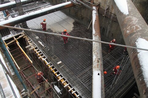 Также на станции начались архитектурно-отделочные работы. Внутренние конструкции подземной части "Фонвизинской" забетонированы уже наполовину.
