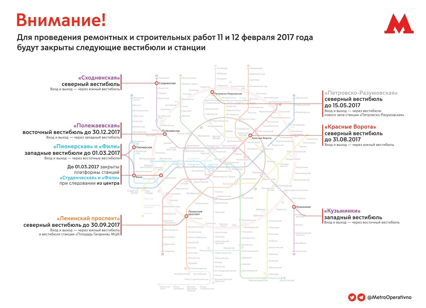 Вестибюли нескольких станций метро закроют 11 и 12 февраля, сообщает пресс-служба Московского метрополитена.