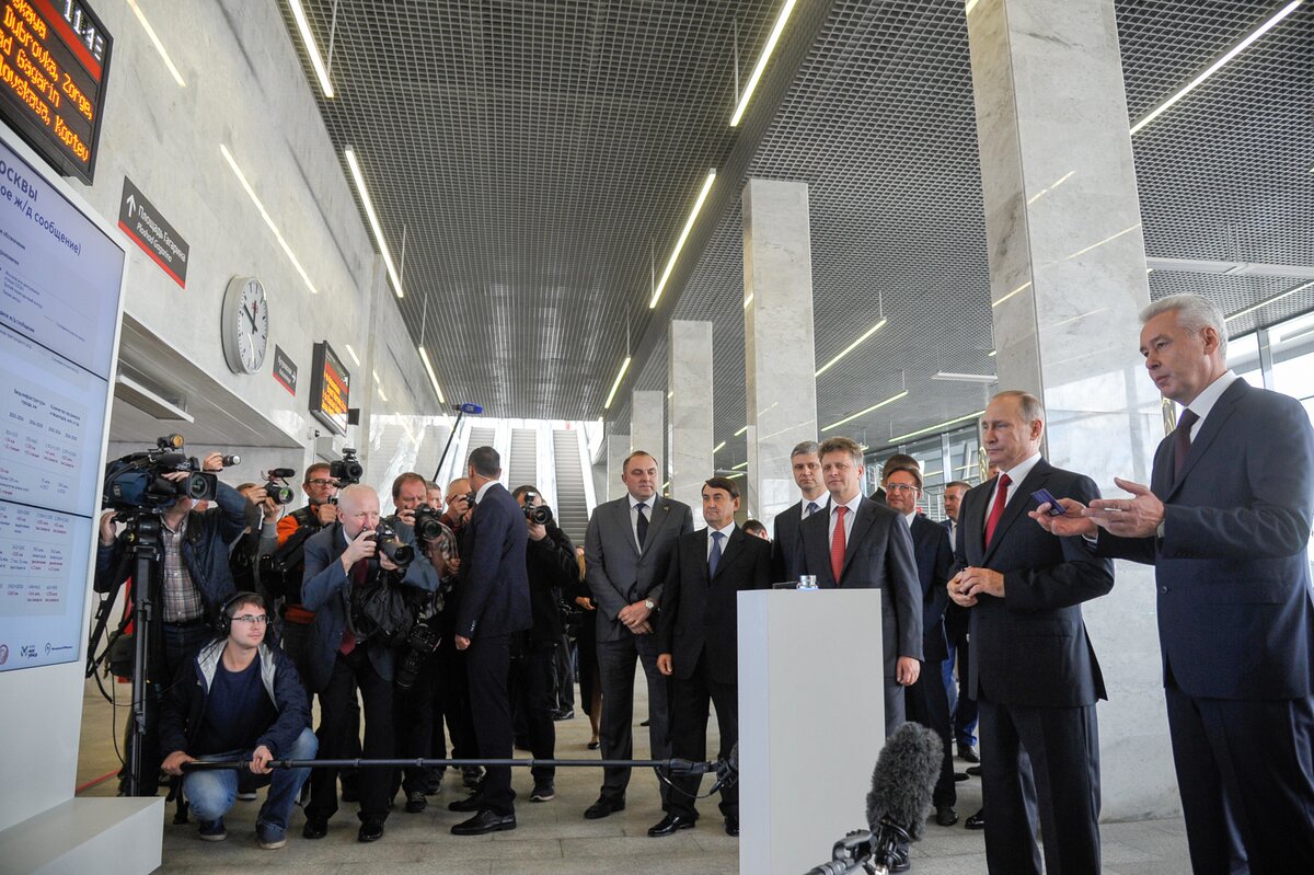 Президент России и мэр столицы стали одними из первых пассажиров МЦК. Владимир Путин и Сергей Собянин сели в поезд "Ласточка" на станции МЦК Лужники, проехали до станции Площадь Гагарина, а затем вернулись обратно.