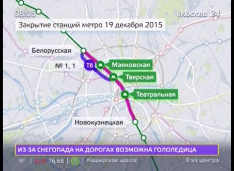Таким образом, станции "Маяковская", "Тверская" и "Театральная" закрыты. Поезда Замоскворецкой линии ходят на участках от "Речного вокзала" до "Белорусской" и от "Новокузнецкой" до "Алма-Атинской". Станции "Белорусская" и "Новокузнецкая" временно стали конечными с пересадками на другие линии.