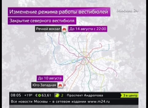 До 10 августа закрыт северный вестибюль станции "Юго-Западная", а до 3 августа закрыт выход в город через южный вестибюль станции "Люблино".