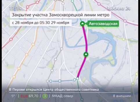 Закроют часть линии от "Автозаводской" до "Каширской, это связано с проведением работ по вводу в эксплуатацию станции "Технопарк".