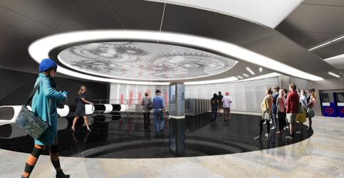 Решения нового интерьера вестибюля "Китай-города" разработали с учетом близости станции к Политехническому музею.