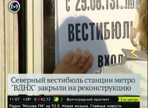 Северный вестибюль станции метро "ВДНХ" закрыт на ремонт до июня 2014 года. За год там планируют заменить эскалаторы.